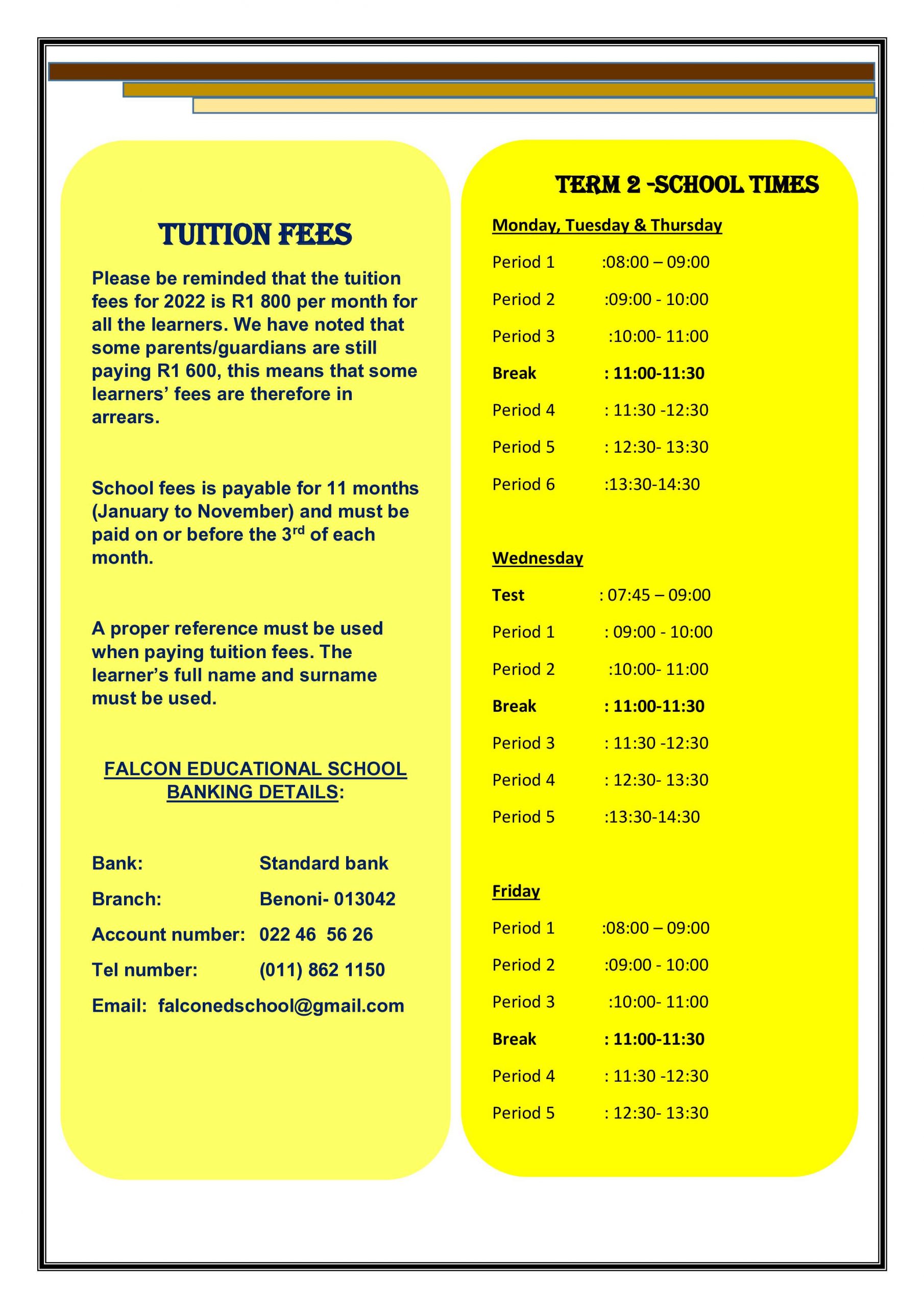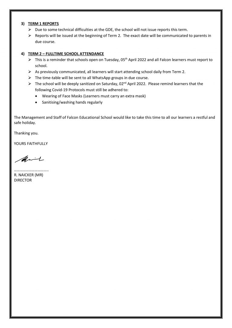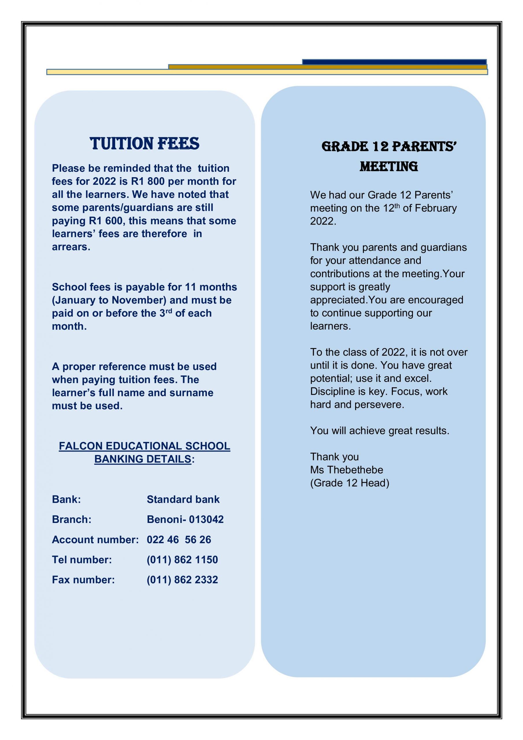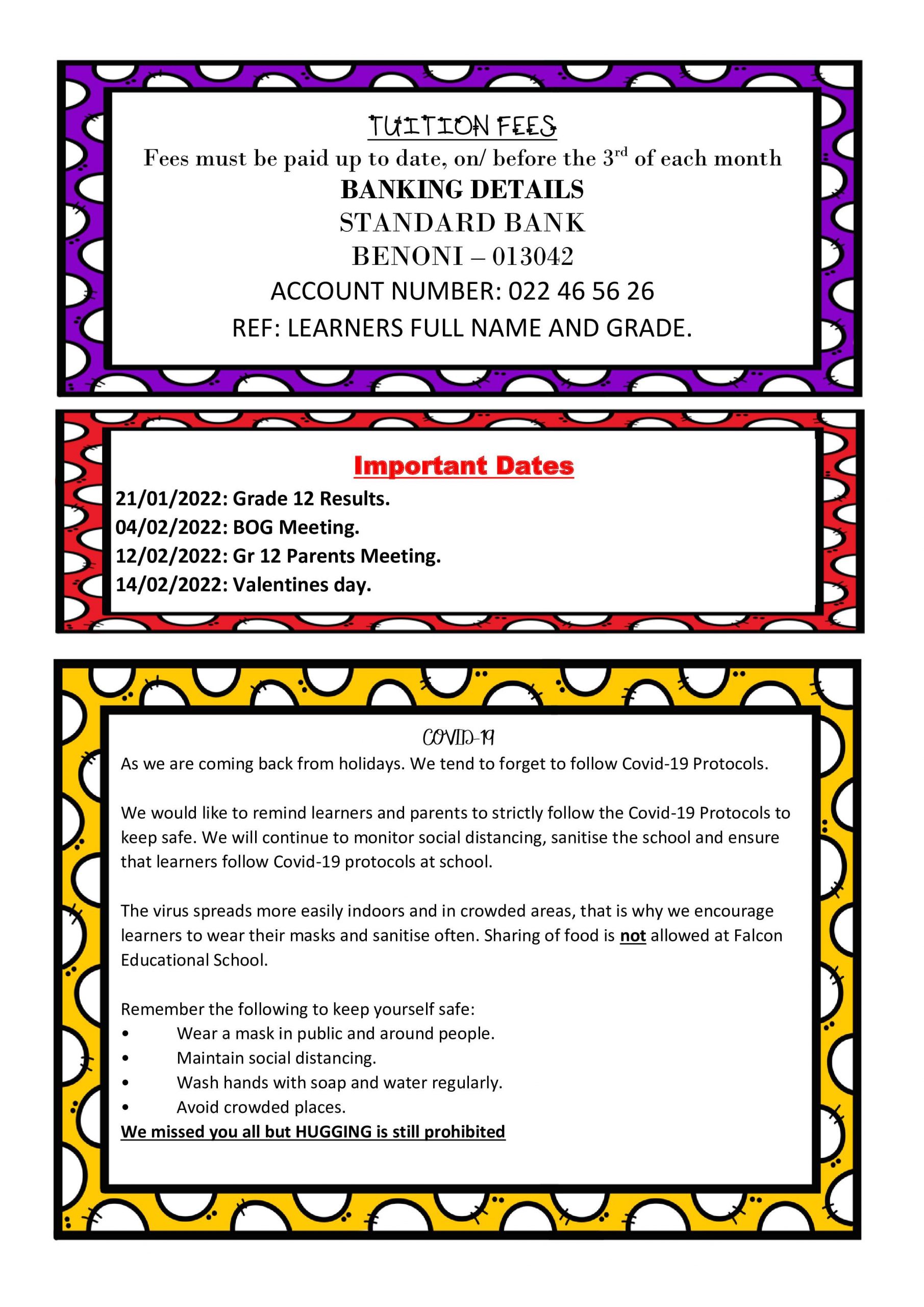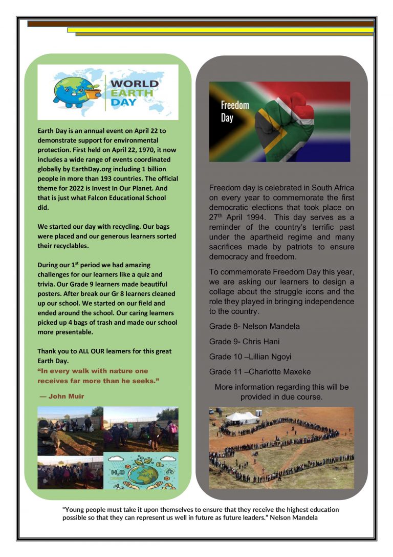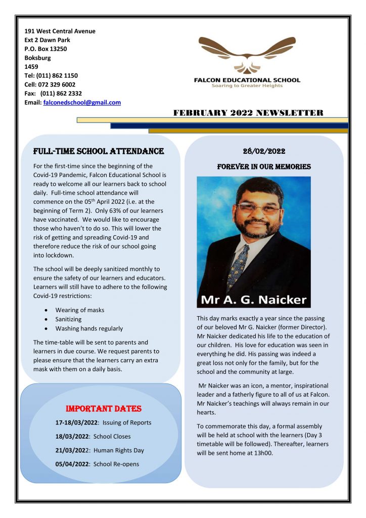 We bid farewell to our Matrics of 2021 on the 29th November 2021. We wish our valued learners everything of the best for their future. The Falcon Family is confident that they will soar to greater heights.